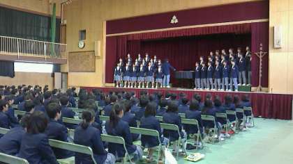 2年生は昨年の経験を生かして、雛壇に並ぶとき壇ごとに揃っての行動ができていました。声もしっかり出せている人もおりました。朝練の成果を発揮して、クラスの団結力を見せてください。