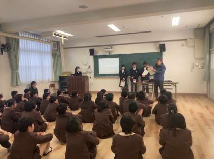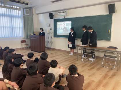 1月29日午後に生徒会役員が野里小学校に訪問し、学校生活のようすやルールについて紹介しました。