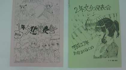 1・2年生の文化発表会当日(10月30日(金))は、時間の都合上、1・2年生の給食を実施しません。つきましては、1・2年生は、昼食を準備していただく必要があります。ご注意ください。