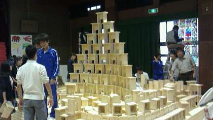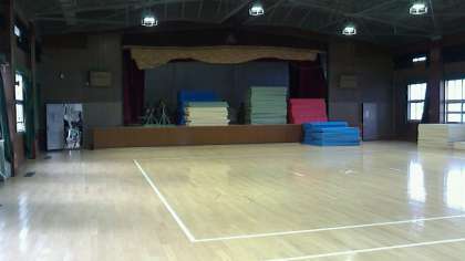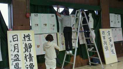 昨日の放課後、展示会場になる講堂の卓球台等を舞台の上に片づけました。フロアーの清掃作業をして会場づくりをしていただきました。