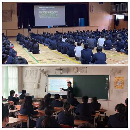 2年生は、先週、金曜日の6時間目、本日、1時間目を使って、進路学習を行いました。金曜日の6時間目には、学校の種類や私立と公立の違いなどについての説明があり、本日は、クラスごとでより詳細な進路事情や調査書の重要さ、それぞれの高校が求める人物像(アドミッショツ・ポリシー)を意識することが大切であるということなど、3年生への第一歩となる情報を学びました。