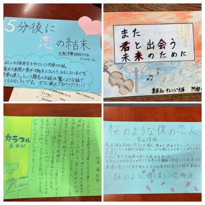 水曜日の放課後、各種委員会を行いました。文化委員では、前回から作成を進めていた、各自がオススメする本の「ポップ」を完成させました。それぞれが好きな本を選び、その本を短いフレーズや絵などで紹介する素敵なポップが完成しました。後日、図書室に掲示する予定です。図書室を利用する生徒の皆さんもポップを見て、本を選んでみてください。