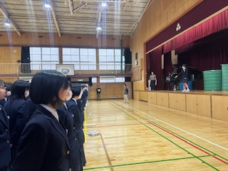 3年生は毎年この時期になると卒業式の歌の練習を行います。男子だけのパート練習を2回、女子だけのパート練習を2回経て、全体練習を行いました。今日は指揮者、伴奏者を入れて卒業式と同じようになるように練習しました。卒業式当日皆さんの素晴らしい歌声を聞けるのを楽しみにしています。