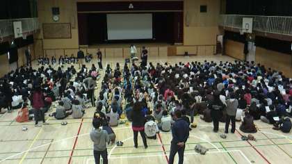 校下5小学校の6年生が、小学校の先生に歌島中学校に引率してしていただきました。