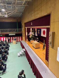 国歌、市歌、校歌斉唱の後、校長先生から式辞がありました。