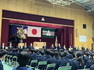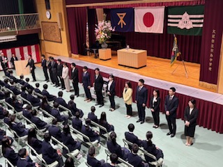 入学式が終わった後、担当教職員の紹介がありました。15名の1年生所属の教員、養護教諭、栄養教諭、事務、管理作業員、スクールサポートスタッフ、生徒指導主事などの教職員が1年生と関わっていきます。もし何か困ったことがありましたら、学校まで連絡よろしくお願いします。