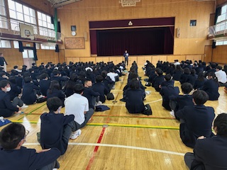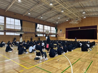 次に学年主任の多々納先生から3年生の1年間の流れが説明されました。3年生は最後の行事となるものが多いです。1日1日を大切に過ごし、自分の進路を獲得していってください。
