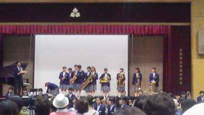 約300名の来校者の前で、大阪府吹奏楽コンクールで金賞を受賞した「風紋」をはじめ全12曲を披露し、皆に感動を与え、喝采を浴びました!!