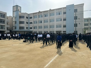 校長先生からは気配り、心配りについての話がありました。体験入部の際に学校の周りを走ることがあるかと思いますが、その際は周りをよく見て注意しながら走ってください。学校の周りを通る人たちに迷惑がかからないように気配り出来るようにしましょう。