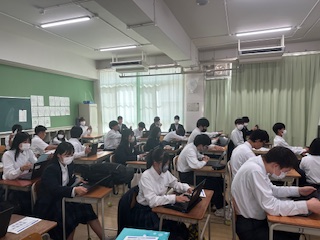 明日、3年生は全国学力状況調査を行います。それに向けていくつかのアンケートをクロームブックを使って、行いました。明日は3年生になって初めてのテストです。頑張りましょう。