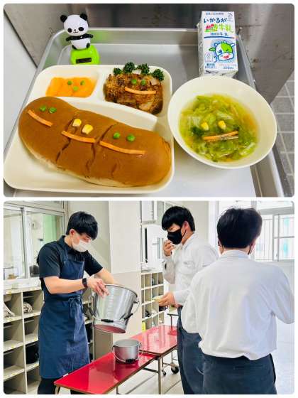 「じゃがいものミートグラタン」には、焼き目のところに米粉を使用して調理してくださっていました。香ばしく焼きあがっていたのでおいしかったと思います。さらに米粉を使うことで小麦アレルギーの人でも喫食できる献立となっていました。