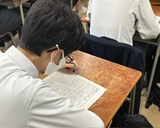 3年生は集会のない朝の時間は朝学習を行います。8時30分から40分からの10分間で基礎的な問題を解きます。今日からしばらくは国語の学習で進めています。5教科で朝学習を予定しています。3年生は受験勉強に向けて復習は必須です。朝の時間で復習をしっかり行ってください。