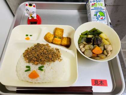 本日の献立では、いりごま・料理酒・みりん・うすくちしょうゆで調理し、最後にあおのりを加えたそぼろでいただきました。