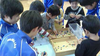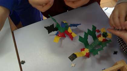 幼稚園児は細かなパーツにもかかわらず、手先も器用に上手に組み立てています。いつもの使い慣れたブロックで、手際よく怪獣を作りお兄さんに見せてくれた園児もいました。