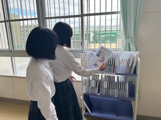 3年生はお昼休みに、進路相談室で高校の資料を見ています。ここには高校のパンフレットの他、高校の資料が多数置かれています。昼休みに進路相談室を開放している日は進路担当の先生がいますので、進路で気になることがあれば、先生に聞きに来たり、資料を見に来てください。