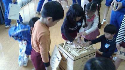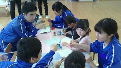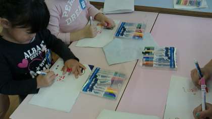 園児たちのお絵かきのとき、背筋を伸ばし美しい姿勢でした。
