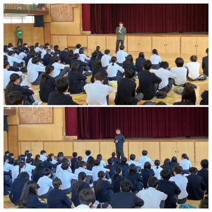 5月10日(金)、3年生は学年集会を行いました。森先生からは、体育時の更衣を素早くしようという話がありました。松野先生からは、7月から切り替わる新札の偉人たちについての話から、渋沢栄一の歴史について話があり、修学旅行での過ごし方や人に迷惑をかけないように行動することの大切さについて話がありました。次にに多々納先生から、修学旅行に向けて、さらに集団としても個人としても時間に対する意識やルール、マナーに対する意識を高める必要があるという話がありました。最後に藤川先生から、テストや成績に関する話があり、その中には、3年生は絶対評価となるため、この1学期の中間テストからとても重要であるため、今まで以上に意識する必要があるという話がありました。