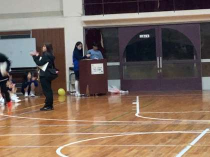 1日目最後に、体育館にて室内オリンピックを行いました。開会式の様子です。