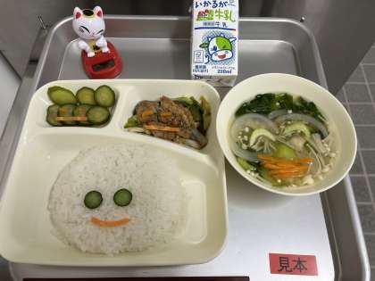 (給食では豚肉は基本「もも肉」を使用しますが、今日は豚バラ肉なのでうま味が濃いです。バラ肉はかたいので、1時間茹でてくださいました。)