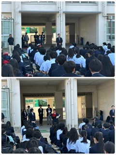 今から修学旅行が始まります。出発式では校長先生からの挨拶、代表生徒からの挨拶がありました。