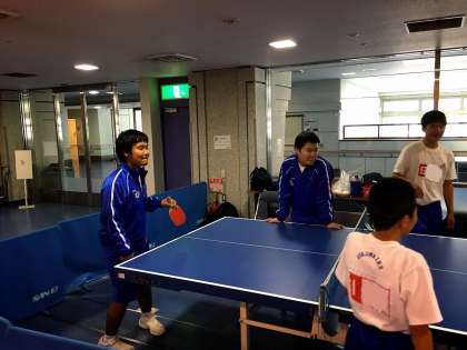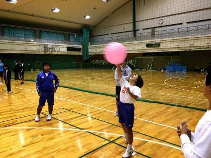 卓球や風船バレー・トランポリンなどでいっぱい遊びました。下の写真は昼食後のひとときです。他校の生徒とのふれあいもあり楽しい一日を過ごしました。