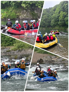 午後からは4〜6組がラフティング体験でした。急流をものすごい速さで川を下ってきました!体験した人はみんなめちゃくちゃ楽しかったと言っていました!