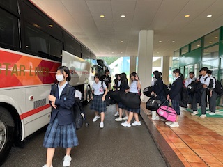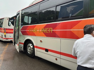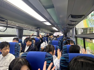 バスの中からお世話になったホテルの方に手を振っていました。