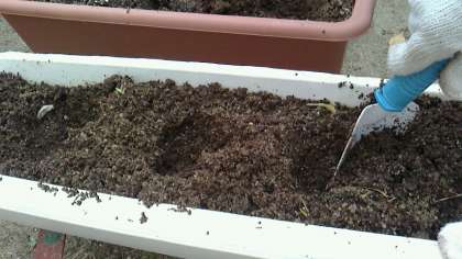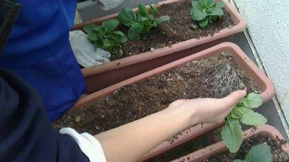 西淀川区役所からいただいた、ビオラとパンジーの植え付けします。