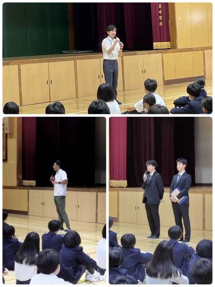 最後に教育実習生の紹介と挨拶がありました。2年生は理科と社会を3週間教わります。