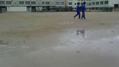 11月14日(土)元気アップ事業の土曜自主授業で学校に来ていますと、8時頃に男子テニス部員が登校してきました。雨がまだパラパラ降っています。このグランド状態では、部活動は難しそうだなと私は見ていました。
