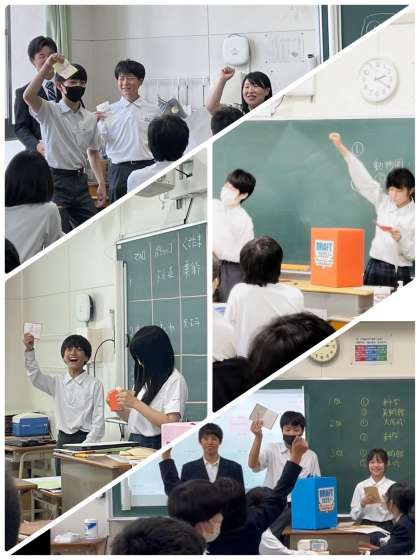 31日6時間目、2年生は校外学習の行き先決めをしました。各班ごとに大阪市内の行きたい施設を選び、他の班と被った際は『ドラフト会議(抽選)』を行って決めました。希望していた施設を勝ち取って喜んでいる班もあれば、はずれて落胆している班もありました。
