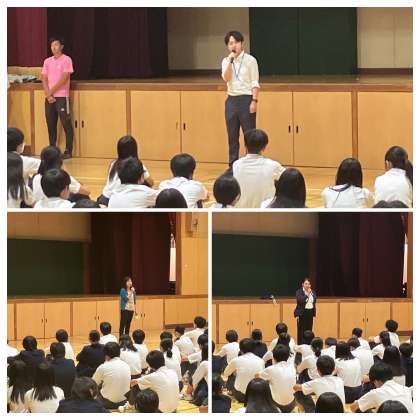 6月5日(水)に3年生は学年集会を行いました。本日は、毎週水曜日にスクールカウンセラーとして、勤務して下さっている中森さんがスクールカウンセラーの役割についてや、悩んでいることや何か相談したいことがあれば気軽にカウンセリングルームが利用できるという話がありました。次に松本先生からは、文化活動発表会の学年としての出し物についての話がありました。最後に藤川先生から、昨日行われた実力テストについて、今回の結果をしっかりと受け止めて次回に繋げてほしいという話、出前授業についての話がありました。