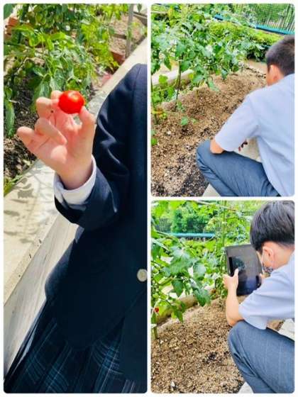 サポートルームで学校の菜園に植えてある夏野菜の観察をしました。