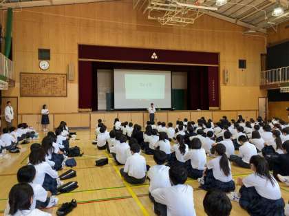 6月7日、1年生は学年集会が行われました。委員長からは次のテストに向けての授業の臨み方について話しました。
