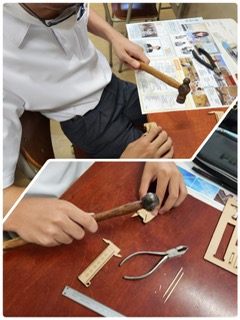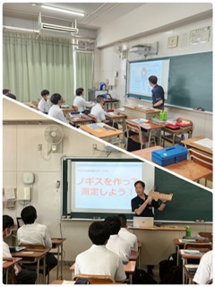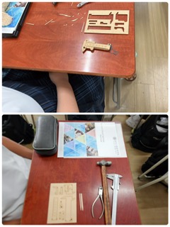 東淀工業高校の授業は、ノギスを作りました。ノギスとは物の厚さや径を測定するものさしです。生徒たちは1人ひとつのノギスを作りました。また、東淀工業高校の紹介も行われました。