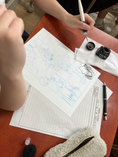 漫画アニメの授業です。漫画アニメコースの紹介や漫画の顔の書き方など実践的なことも学びました。