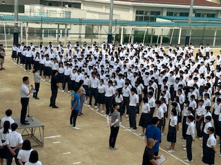 本日も晴れのため、外で全校集会を行うことが出来ました。