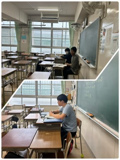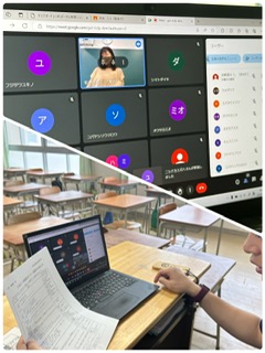 本日は双方向オンライン通信の練習のために、生徒たちは1時間目は自宅からクロームブックでオンライン通信を行いました。