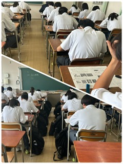 本日はテスト最終日です。明日からはテストが返ってきますが、間違ったところは必ず復習するようにしましょう。写真は美術のテストの様子です。