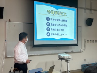 6月26日のテスト終了後、部活動部長会議が行われました。夏の部活動では水分補給が非常に重要になります。専門家の方に来ていただき、講義していただきました。今回は2年生の主要メンバーを中心に行われました。3年生はこの夏休みでほとんどが引退するからです。2年生が中心となって部活動での熱中症対策をしていってください。