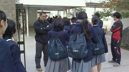 今日の朝は昨日までの陽気とは変わり冷え込みました。生徒達の服装を見てみますと、Vネックのセーターを着用している生徒、マフラーを使用している生徒を見かけました。