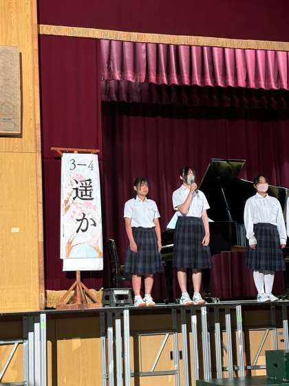 5番目は4組で、曲はGReeeeNの「遥か」です。この曲は愛についての歌で、とても合唱しやすい曲です。男子のパートの盛り上がりがとても良く、女子のパートも良く頑張っていました。