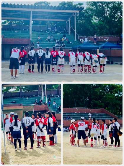 連日連投の2年生ピッチャーも踏ん張り、監督も選手も一丸となり、声を枯らせて応援しましたが、夕日の沈む夕暮れ時に3年生の熱い夏は終わりました。0対10で試合を終えました。成績としては大阪府ベスト16でした。