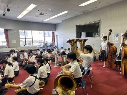 7/25(木)大東市立文化ホールで行われた大阪府吹奏楽コンクール北地区大会に本校の吹奏楽部が参加しました。年に一度の大舞台に、部員一同緊張して臨み、課題曲・自由曲を演奏することができました。