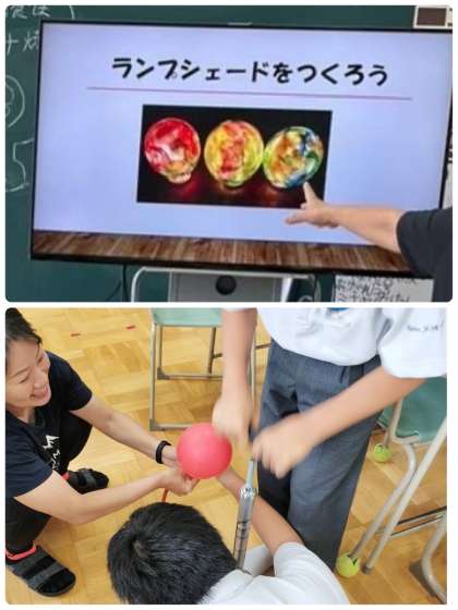 文化発表会に向けてランプシェードの作成に取り組んでいます。最初にパワーポイントを使って一通りの流れを説明してもらい、イメージ作りです。各工程も画面を確認しながら作業を進めていきました。