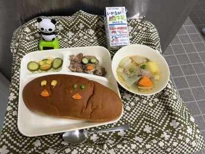 ベーコン(7.8kg)を主材にじゃがいも、たまねぎ、にんじん、グリンピース、コーン、マッシュルームを使用した洋風の煮ものです。ベーコンから出たコクがよりおいしいスープ煮となっていました。