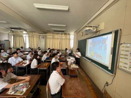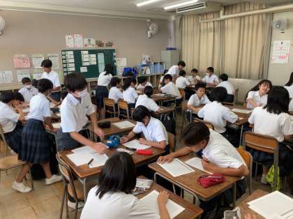 まず学級委員長からスライドを使っての全体説明があり、その後は班長が指示をしながら各パーツの作成を行いました。