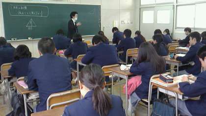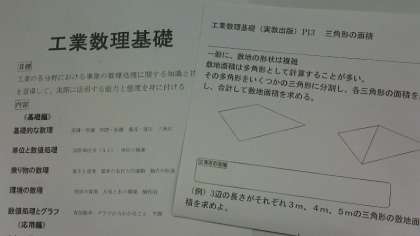 数学科の藤原先生に、工業高校の生徒が学ぶ数学「工業数理基礎」の基礎的部分の授業していただきました。中学校で学んだ知識を応用して、三角形の面積を求めました。建築物の敷地の面積を求めるときに必要です。