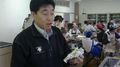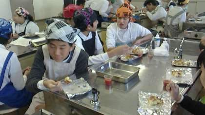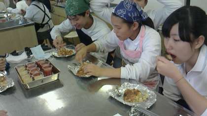 熱々の「サツマイモとリンゴのケーキ」と冷えた「まっかなトマトゼリー」いただきました。自分たちで作ったものを仲間と一緒に食べる姿は、にこやかな表情でした。