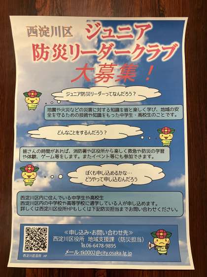 西淀川区ではジュニア防災リーダークラブのメンバーを募集しています。